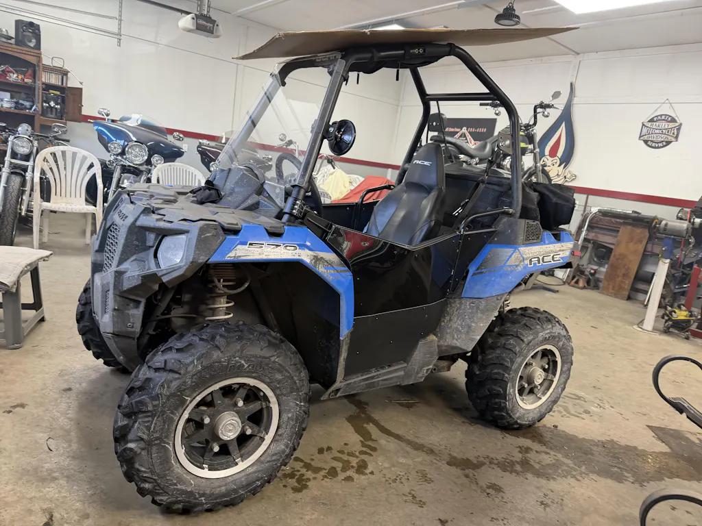 Doors mount using existing mounting locations on the Polaris Ace with additional brackets and open/close using a secure latch assembly.